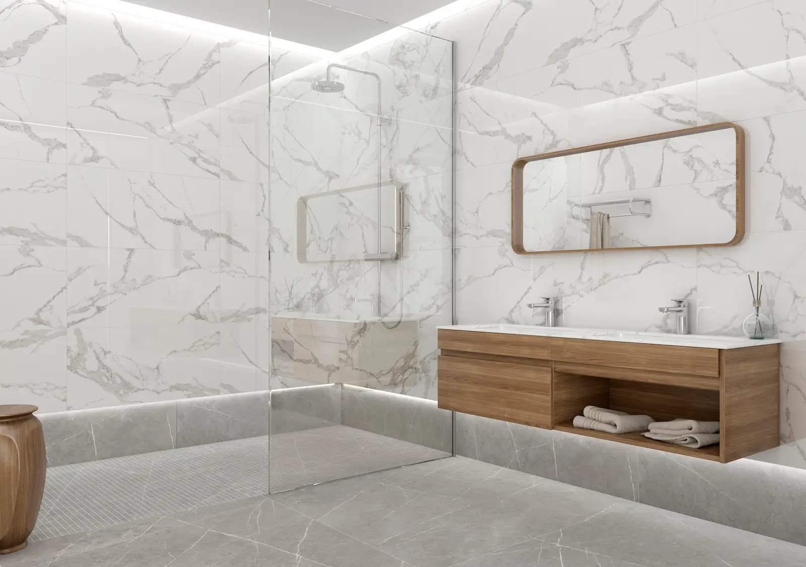 Fachmännische Verlegung großformatiger Fliesen aller Art.Wir sorgen für fugenlose Oberflächen mit minimalen Fugen und schaffen so eine moderne und großzügige Optik.